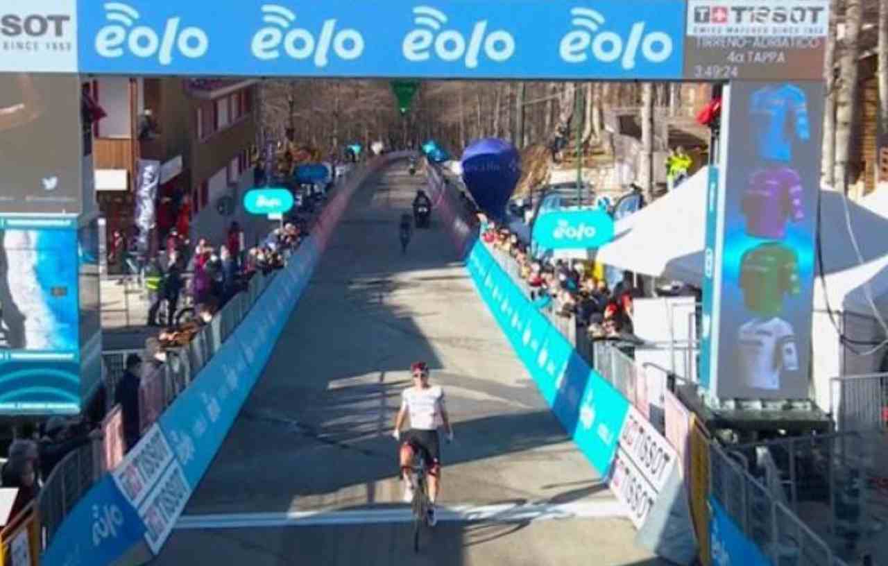 Tadej Pogacar ha lasciato sfogare tutti i rivali nelle prime tre tappe della Tirreno ma al primo traguardo duro e vero, quello a Prati di Tivo ha fatto la differenza. Lo sloveno della UAE Team Emirates che a luglio difenderà la vittorie nel Tour 2020, ha piazzato l’attacco decisivo a 5 km resistendo poi alla rimonta di Simon Yates, arrivato a 6″. E ora guida la classifica con 35″ su Van Aert.