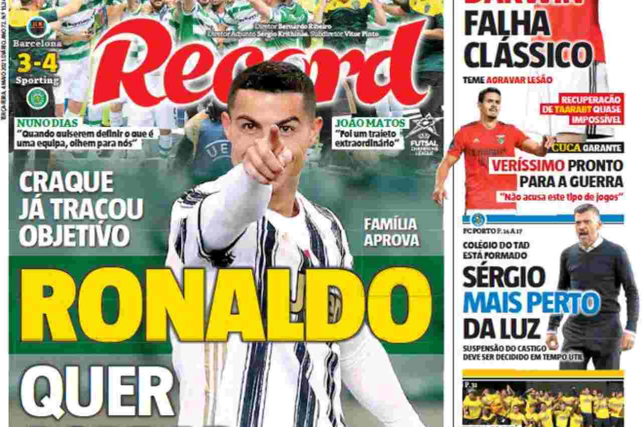 CR7 sarebbe pronto per tornare al suo passato, ma non al Manchester United che è la prima vera big nella quale ha scritto pagine importante. Secondo il quotidiano sportivo ‘Record’ infatti nel suo futuro ci sarà lo Sporting Lisbona, là dove è cominciato tutto., Una scelta approvata anche dalla famiglia del campione.