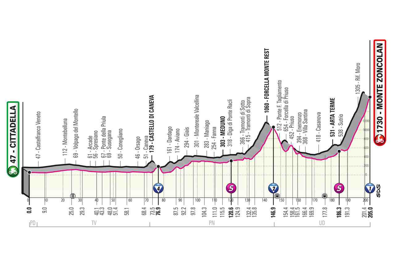 La Cittadella-Monte Zoncolan chiama gli uomini di classifica anche se sul traguardo friulano potrebbe arrivare una fuga. Ma tutti gli occhi sono puntati su Egan Bernal (Ineos-Grenadiers) che ha dimostrato fino ad oggi di essere il più forte quando la strada sale. E poi la sua squadra è stata anche la più compatta, può scortarlo sino alla fase decisiva.