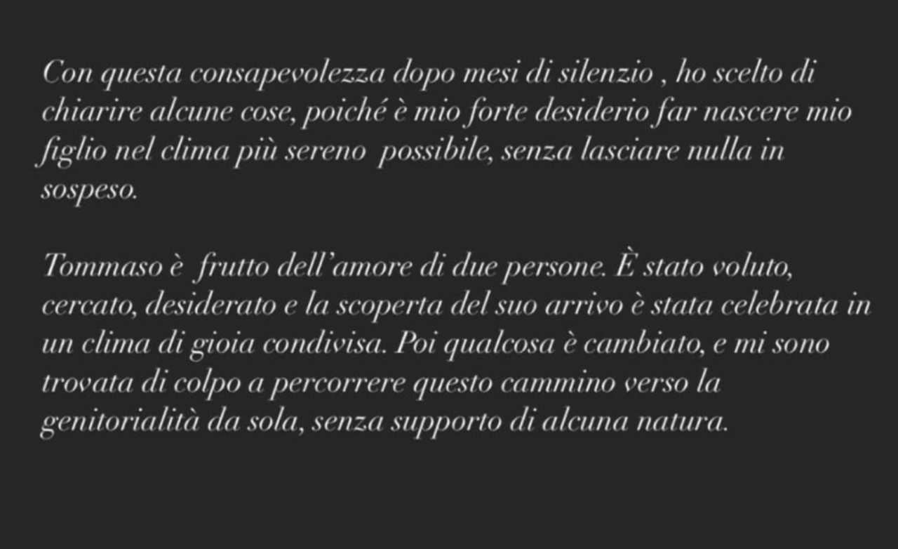 Oggi che il parto è vicino, ha deciso di confessare la sua amarezza pubblicamente: “Non è mai stata mia intenzione spettacolarizzare questo momento speciale, delicato ed intimo, né farne motivo di lamentela. Il mio unico obiettivo, oggi e sempre, è il benessere di Tommaso”.