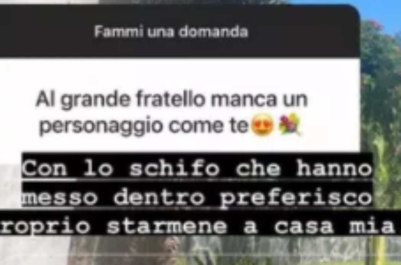 Una precisa domanda di un suo follower che le chiedeva perché non facesse parte di quel cast pur avendone tutti i requisiti, è stata l’occasione per una stoccata al reality. “Con lo schifo che hanno messo dentro, preferisco proprio starmene a casa mia”. Nomi lei non ne fa, ma intanto il messaggio è arrivato forte e chiaro.