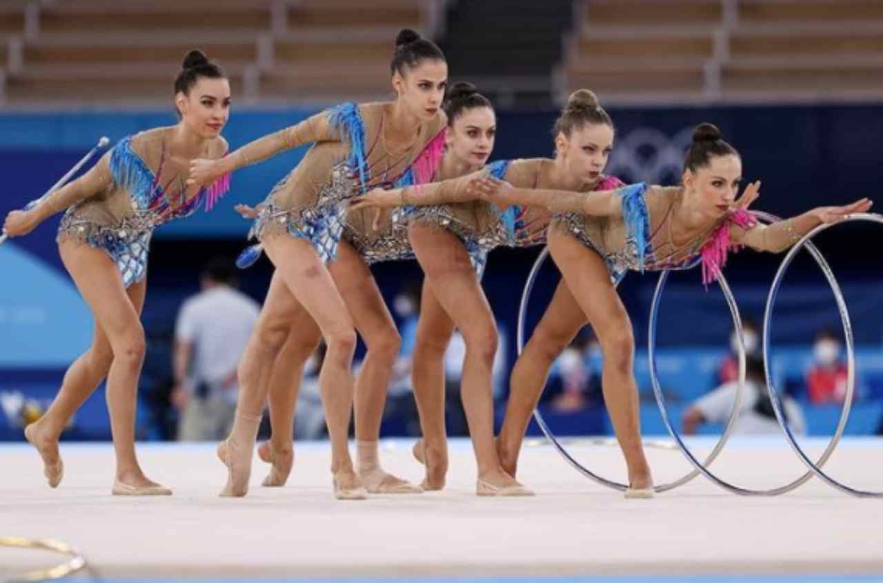 Un esercizio praticamente perfetto quello della capitana Alessia Maurelli, insieme a Martina Centofanti, Agnese Duranti, Martina Santandrea e Daniela Mogurean. Hanno totalizzato 86.000 punti con i due attrezzi (44.350 con le 5 palle e 41.650 nel misto con i 3 cerchi e 4 clavette) battute soltanto dalla Russia con 88.350, ma davanti alla Bielorussia con 85.400.