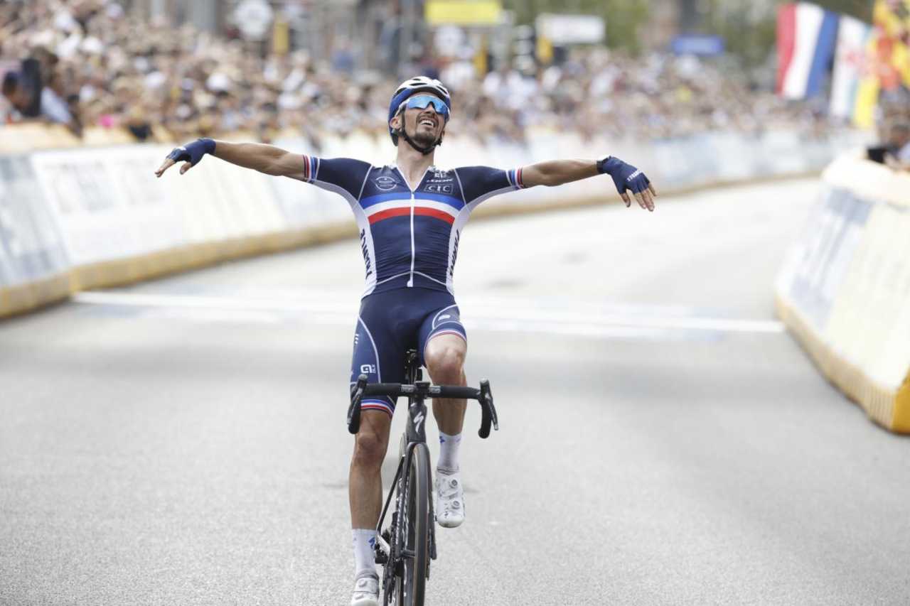 Due mesi fa a Leuven non partiva con i favori assoluti del pronostico, ma Julian Alaphilippe è animale da gara e alla fine della giornata ha bissato il titolo di campione del mondo. Così il francese si presenterà il via della nuova stagione indossando ancora una volta la maglia iridata e ha grandi progetti per il futuro.