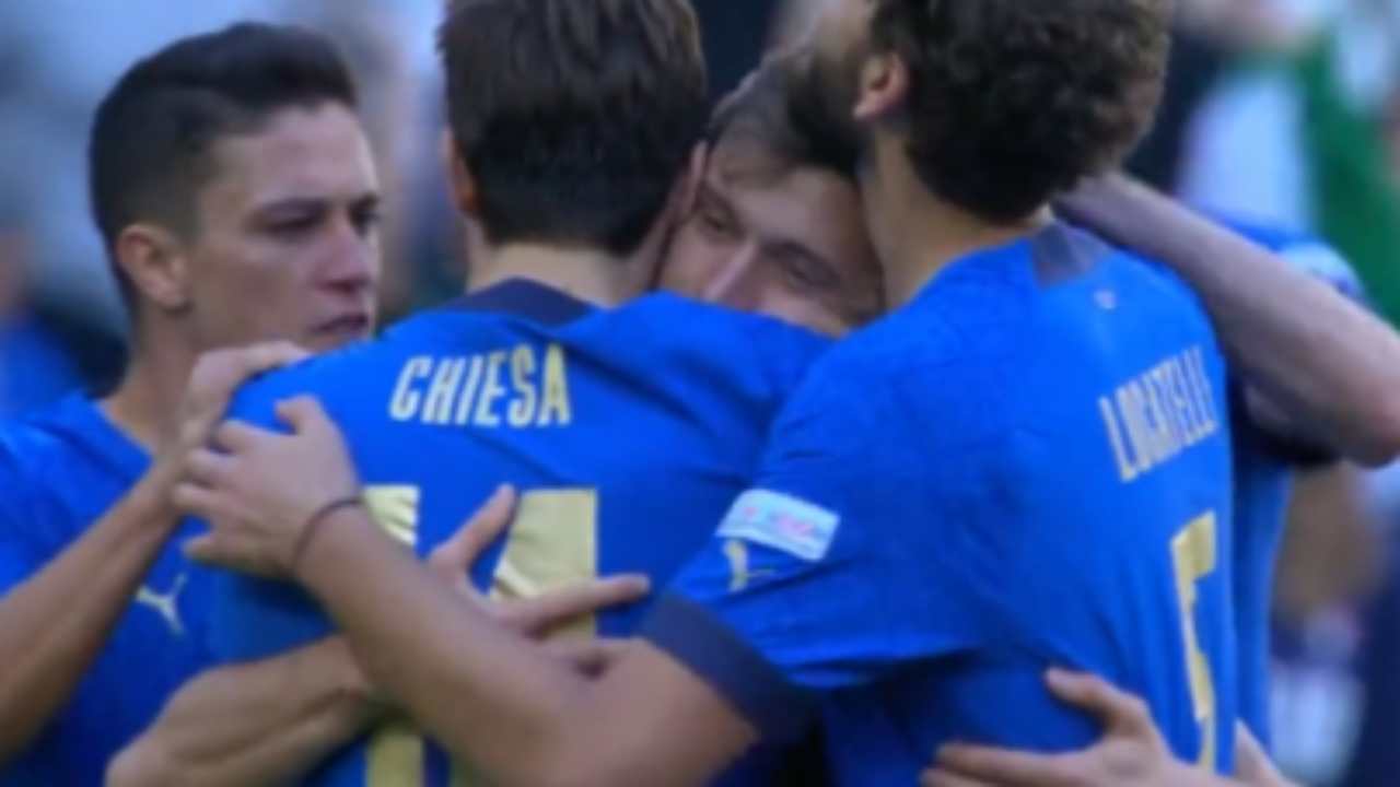 I giocatori italiani esultano dopo un gol (Foto screenshot Twitter)