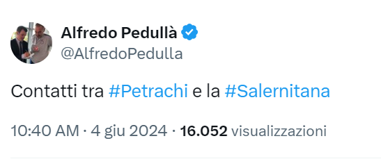 Home » Calcio » ESCUSIVA SI Salernitana, contatti con PetrachiESCUSIVA SI Salernitana, contatti con Petrachi 04/06/2024 - 16:4004/06/2024 - 11:54 di Massimiliano Fina