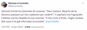Il capitano ha ringraziato il Mister ma ha ribadito comunque la sua ferrea volontà di lasciare Napoli: “Il mio ciclo è finito. Voglio andare alla Juve e ho già informato la società”.