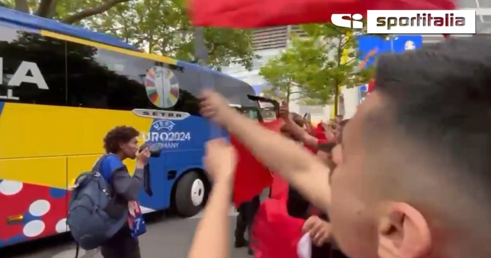 L’Albania è arrivata al WestfalenStadion per il match di questa sera contro l’Italia. Il nostro inviato, Tancredi Palmeri ha raccolto le immagini del pullman dei rossoneri. Grande accoglienza per la formazione albanese da parte dei tantissimi tifosi che hanno raggiunto la Germania. Ecco le immagini: