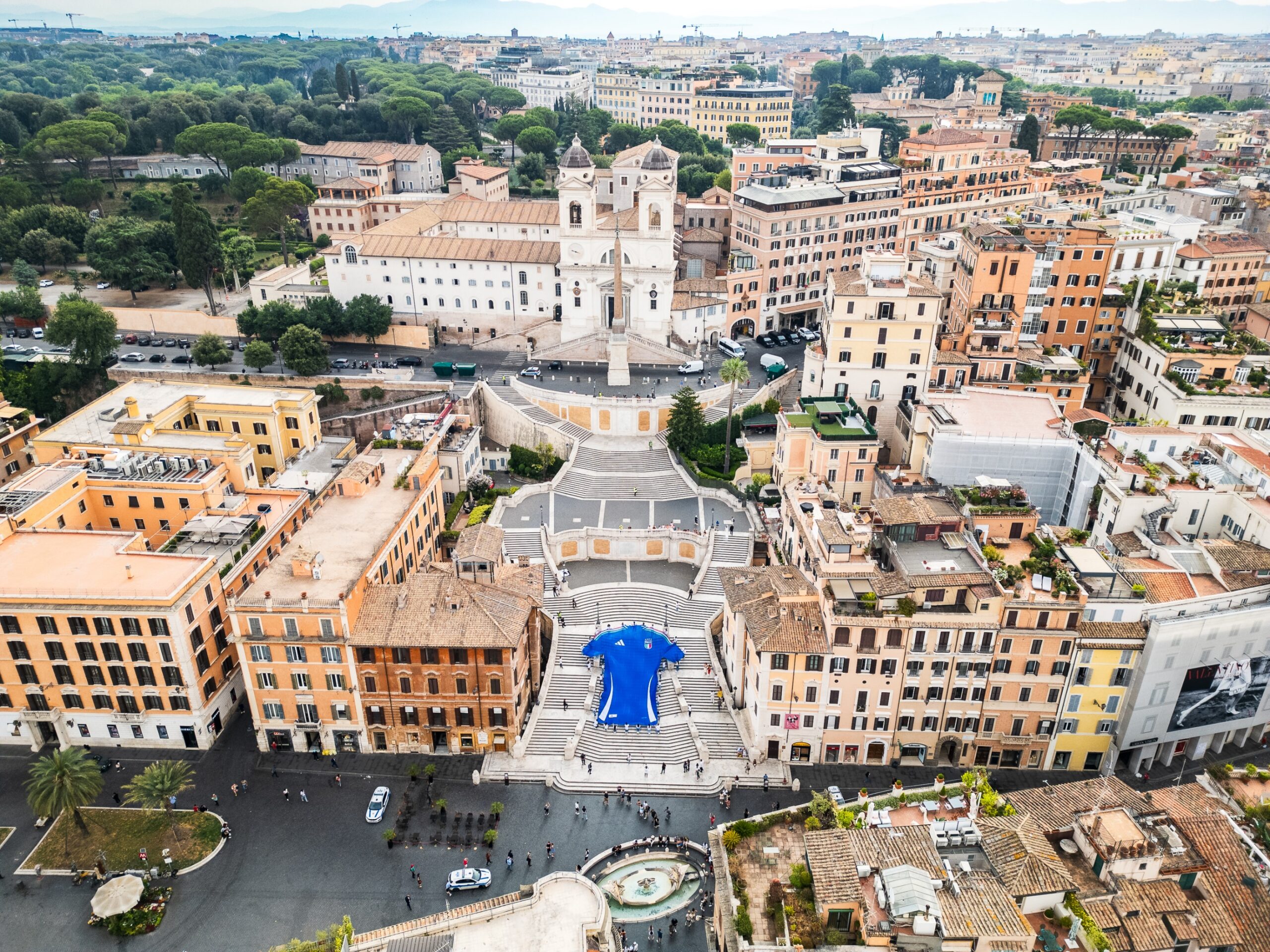Adidas e FIGC alla vigilia della seconda gara del girone a UEFA EURO 2024 hanno esposto nel cuore di Roma un’enorme maglia della Nazionale italiana di calcio, esprimendo massimo supporto per la squadra del commissario tecnico Luciano Spalletti, che domani sera, giovedì, scenderà in campo con la Spagna. Il luogo dove questa maglia di oltre 15 metri di lunghezza è stata srotolata non è casuale. La grande stoffa azzurra infatti è stata esposta sopra Piazza di Spagna, sulla scalinata che porta fino all’iconica chiesa di Trinità dei Monti.