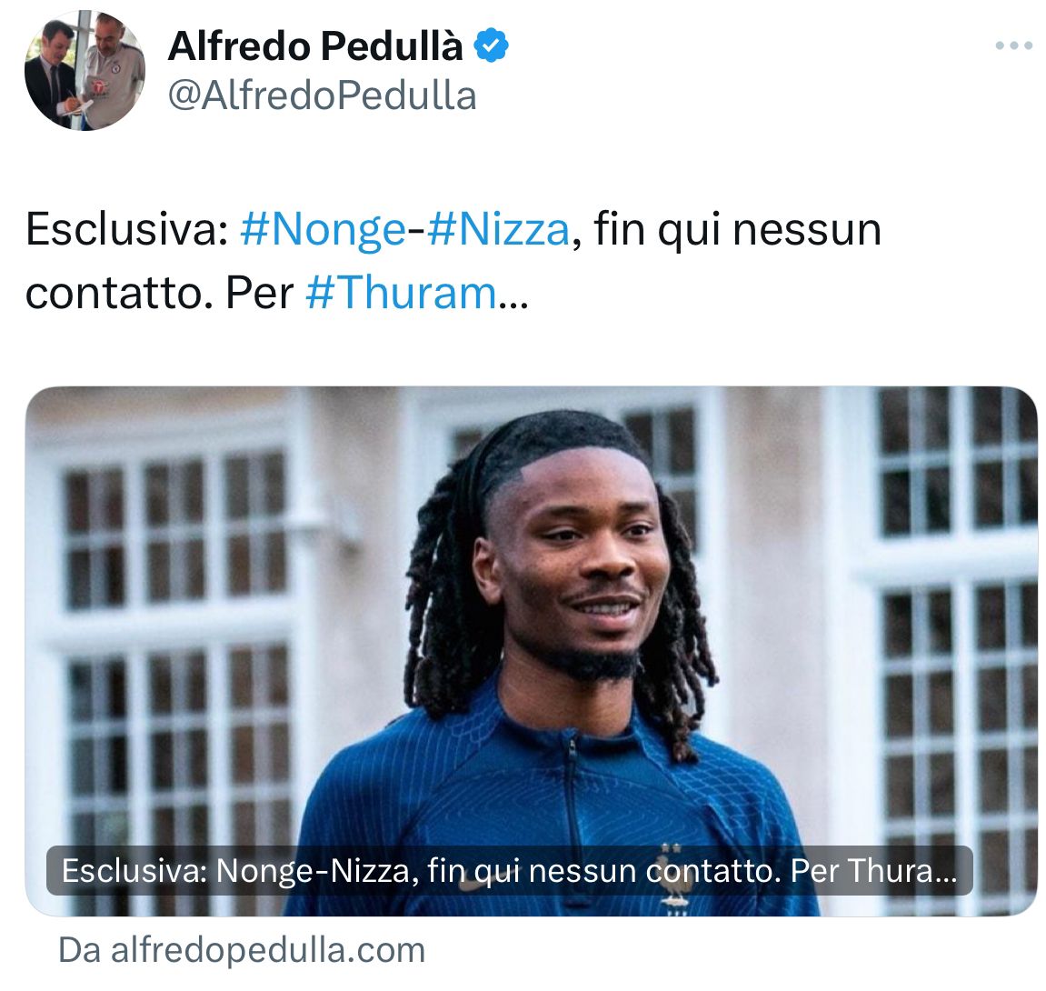 Secondo quanto riferito dal nostro Alfredo Pedullà, in esclusiva, alla Juventus piace sempre Khephren Thuram. Nella trattativa per il centrocampista non sarebbe però stato inserito Nonge.