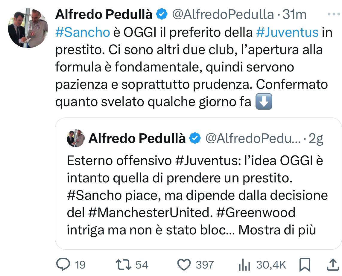 Secondo quanto riportato in esclusiva dal nostro Alfredo Pedullà è Jadon Sancho il preferito della Juventus. L’esterno inglese del Manchester United piace con la formula del prestito.