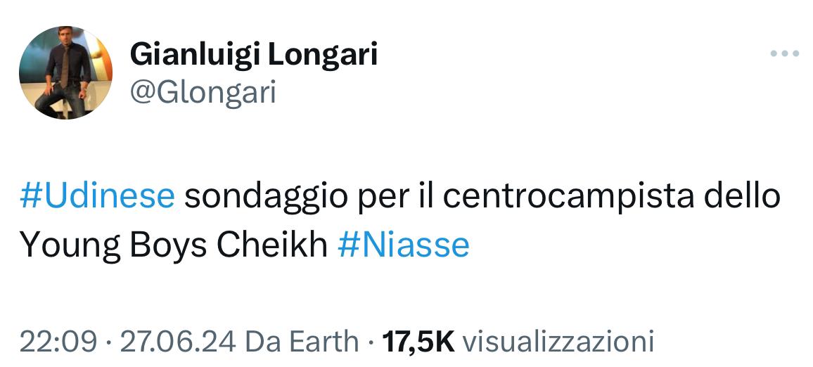 Secondo quanto riportato in esclusiva dal nostro Gianluigi Longari, l’Udinese ha effettuato un sondaggio per il centrocampista dello Young Boys Cheik Niasse.