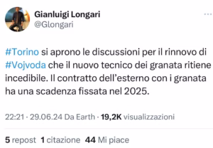 Secondo quanto riportato in esclusiva dal nostro Gianluigi Longari, il Torino sta trattando il rinnovo di Vojvoda con attuale scadenza nel 2025. Il nuove tecnico, Paolo Vanoli, ritiene infatti il calciatore incedibile.
