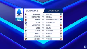 Oggi la Lega Serie A svela il calendario della stagione 2024/25, la prima dopo oltre 20 anni senza il supporto dello storico sponsor TIM. Il calendario è confermato asimmetrico e avrà un solo turno infrasettimanale, il 30 ottobre, e soprattutto la Lega ha comunicato che le giornate si svolgeranno generalmente su 9 orari diversi.