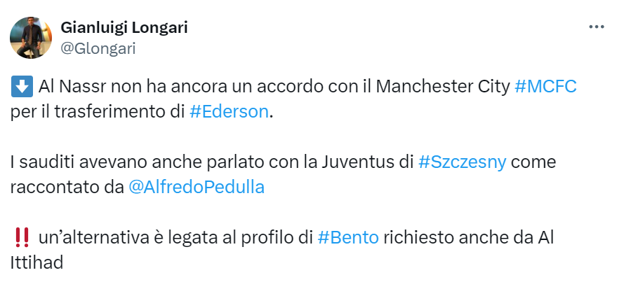 Home » Calcio » ESCLUSIVA SI Al-Nassr, ancora nessun accordo con EdersonESCLUSIVA SI Al-Nassr, ancora nessun accordo con Ederson 12 Luglio 2024 di Massimiliano Fina