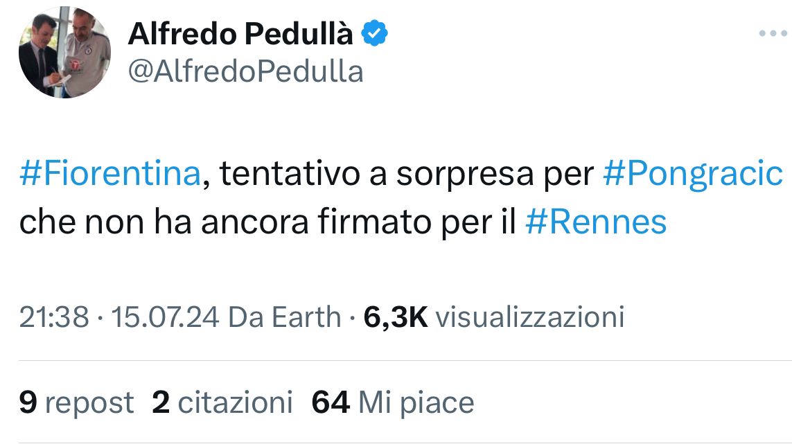 Secondo quanto riportato in esclusiva dal nostro Alfredo Pedullà, la Fiorentina dopo aver quasi chiuso la cessione di Milenkovic al Nottingham Forest avrebbe ora fatto un tentativo con il Lecce per Pongracic. Il difensore non ha infatti ancora chiuso con il Rennes.