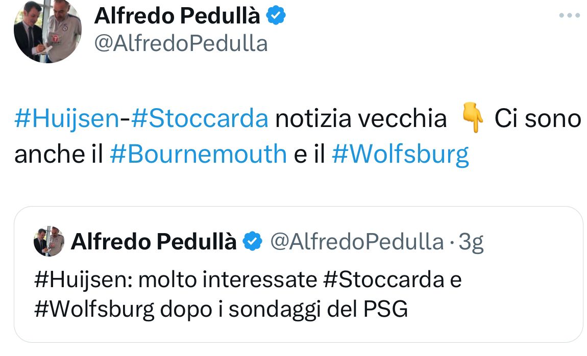 Secondo quanto riportato in esclusiva dal nostro Alfredo Pedullà, non solo lo Stoccarda, anche Wolfsburg e Bournemouth sarebbero interessate a Dean Huijsen, difensore della Juventus.