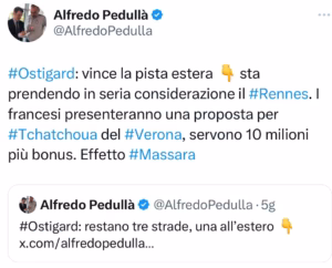 Secondo quanto riportato in esclusiva dal nostro Alfredo Pedullà, Ostigard starebbe prendendo in considerazione la possibilità di passare al Rennes. Il difensore del Napoli potrebbe accettare quindi la destinazione estera. Non solo Ostigard perché il Rennes presenterà un’offerta anche per Tchatchoua del Verona. Per il cartellino del giocatore servono 10 milioni più bonus.