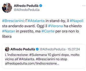 Secondo quanto riportato in esclusiva dal nostro Alfredo Pedullà, al momento sarebbe in stand-by l’interesse dell’Atalanta per Brescianini del Frosinone. Il Napoli starebbe invece andando avanti. Il Verona avrebbe poi chiesto proprio al Napoli Natan, Conte al momento non libera però il difensore.