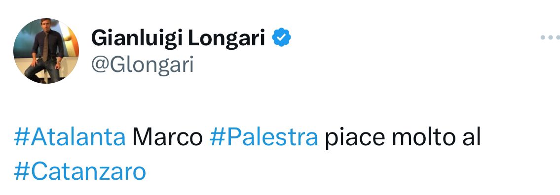 Secondo quanto riferito in esclusiva dal nostro Gianluigi Longari, il Catanzaro sarebbe interessato a Marco Palestra, difensore dell’Atalanta U23. Ecco il tweet:
