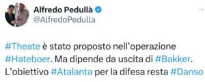 Secondo quanto rivelato in esclusiva dai nostri Gianluigi Longari e Alfredo Pedullà, Theate sarebbe stato proposto anche all’Atalanta e non solo alla Roma. Il difensore belga è stato proposto alla Dea nella trattativa per Hateboer al club francese. Secondo quanto rivelato dal nostro Alfredo Pedullà, tutto è vincolato anche dalla cessione di Bakker. Il primo obiettivo dell’Atalanta resta sempre Danso.
