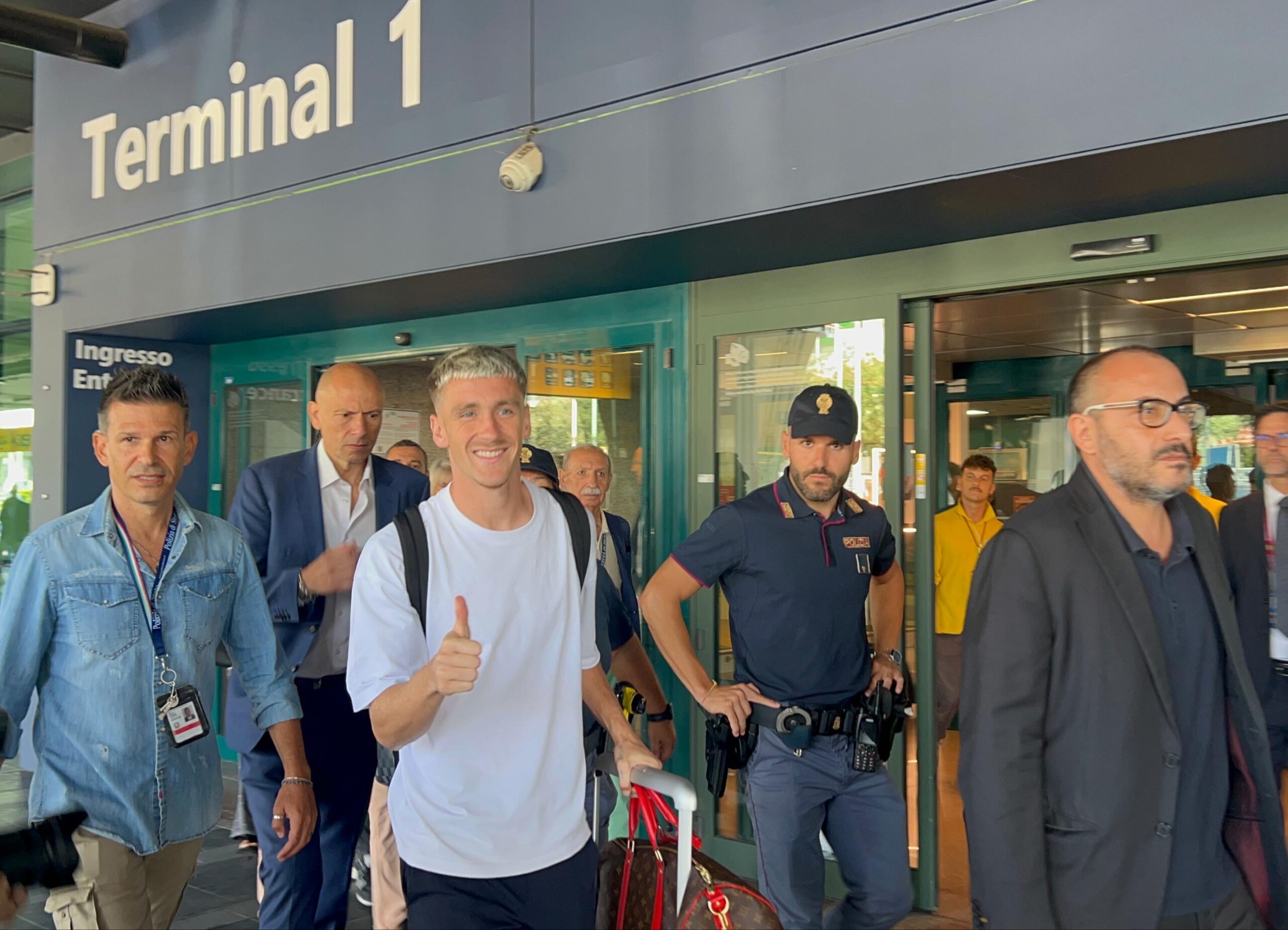 10:10 – Alexis Saelemaekers atterrato a Fiumicino. Pronto alla nuova avventura con la maglia della Roma.