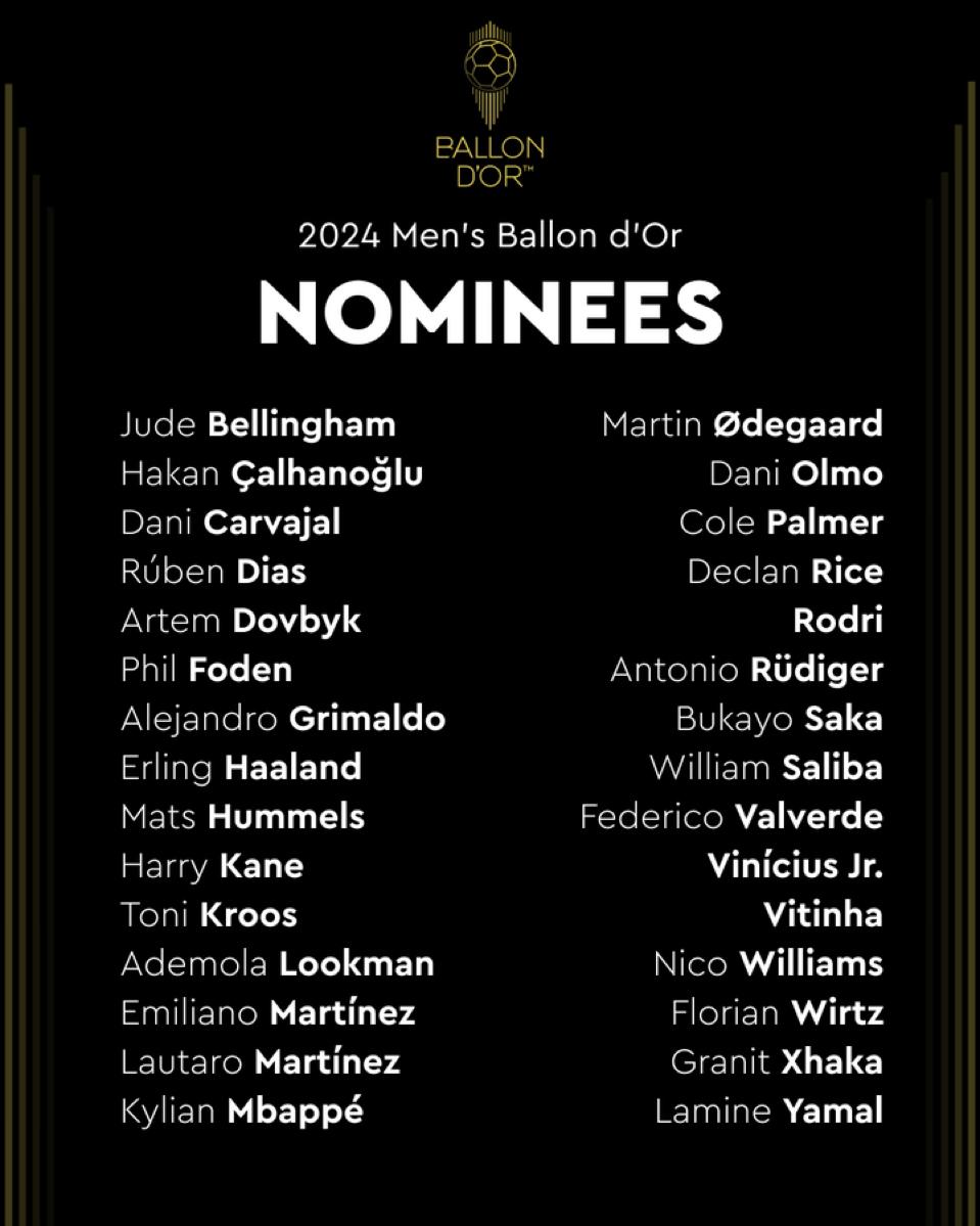 France Football ha reso noti i 30 nominati al Pallone d’oro 2024. Nella lista ci sono anche gli interisti Lautaro Martinez e Hakan Calhanoglu, e l’atalantino Ademola Lookman. Non c’è invece nessun italiano, come previsto e prevedibile.