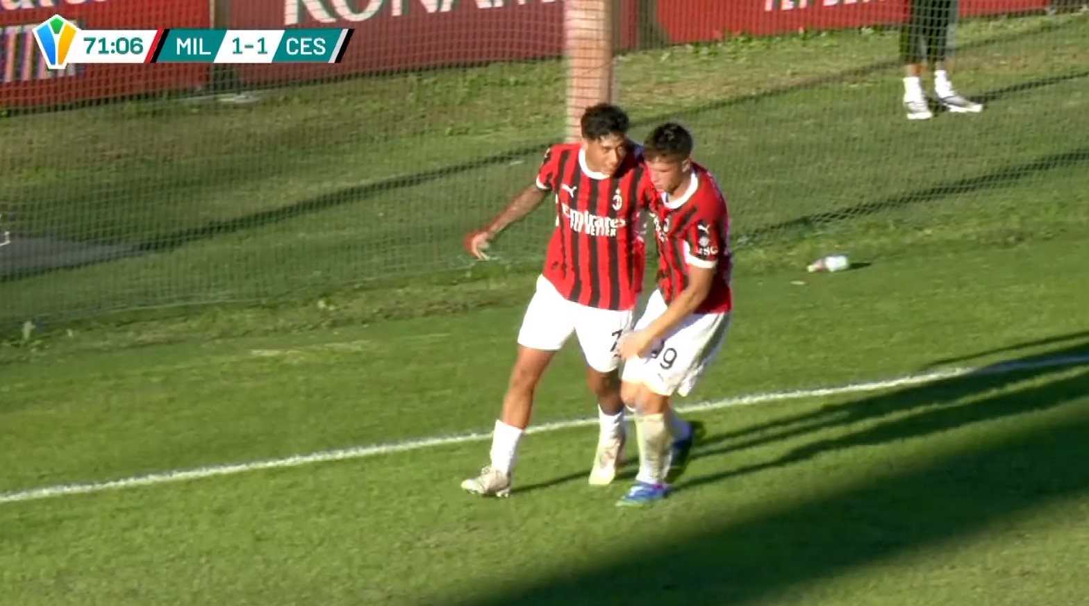 Vantaggio Cesena al 24′. Gara che si sblocca su sviluppi di punizione laterale da destra. Cross profondo in area, colpo di testa di Perini che servito da Castorri anticipa la difesa rossonera e fa 0-1. Al 71′ fallo di Valentini su Perrucci e rigore per il Milan. Dal dischetto si presenta lo stesso Perrucci che con una conclusione rasoterra bassa batte il portiere e fa 1-1.