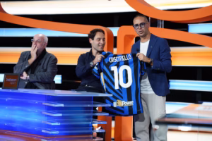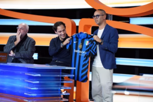 Nel corso della puntata di SportitaliaMercato Stefano Tino, Managing Director del Gruppo Betsson ha regalato una maglia personalizzata dell’Inter al nostro direttore Michele Criscitiello. Ecco le immagini:
