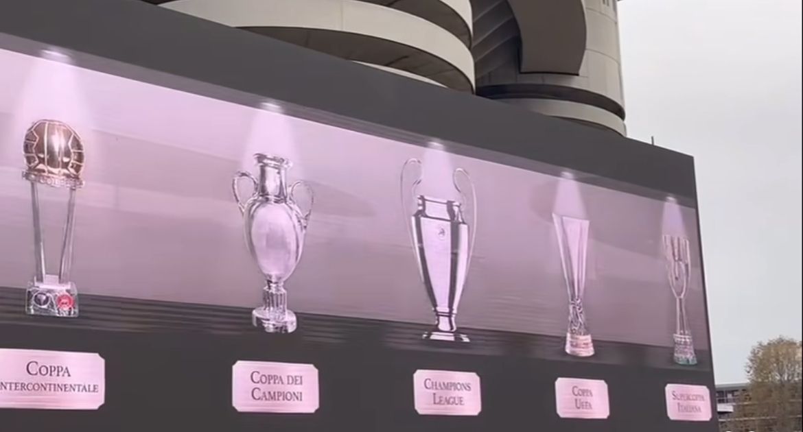 Direttamente da San Siro, il nostro Tancredi Palmeri ci mostra la nuova disposizione grafica dei trofei europei vinti da Inter e Milan esposta all’esterno dello Stadio Milanese. Ecco il video, le immagini e il racconto del nostro inviato.