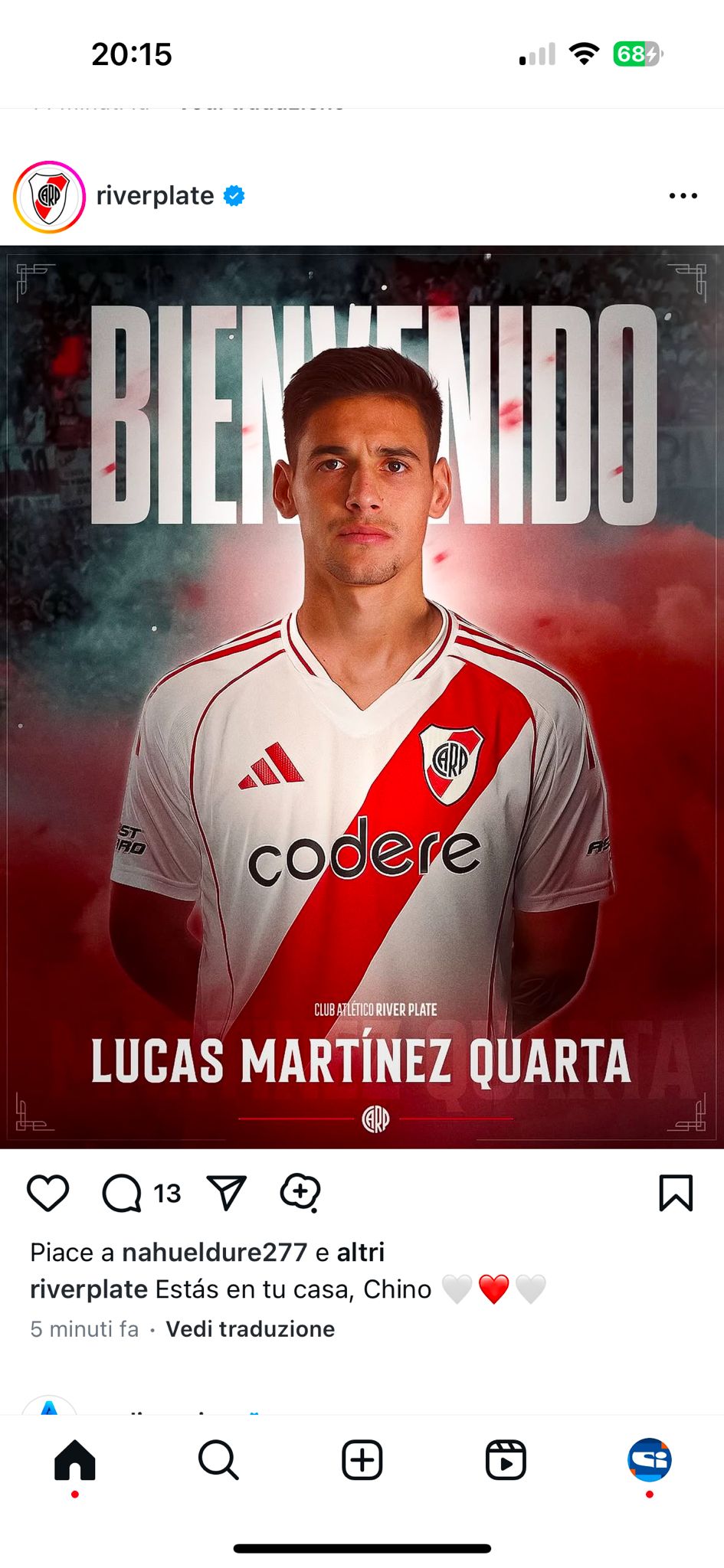 Ora è anche ufficiale: Lucas Martinez Quarta è un nuovo calciatore del River Plate. Dopo 5 stagioni 142 presenze e 15 gol, Martinez Quarta lascia ufficialmente la Fiorentina per tornare al River Plate.