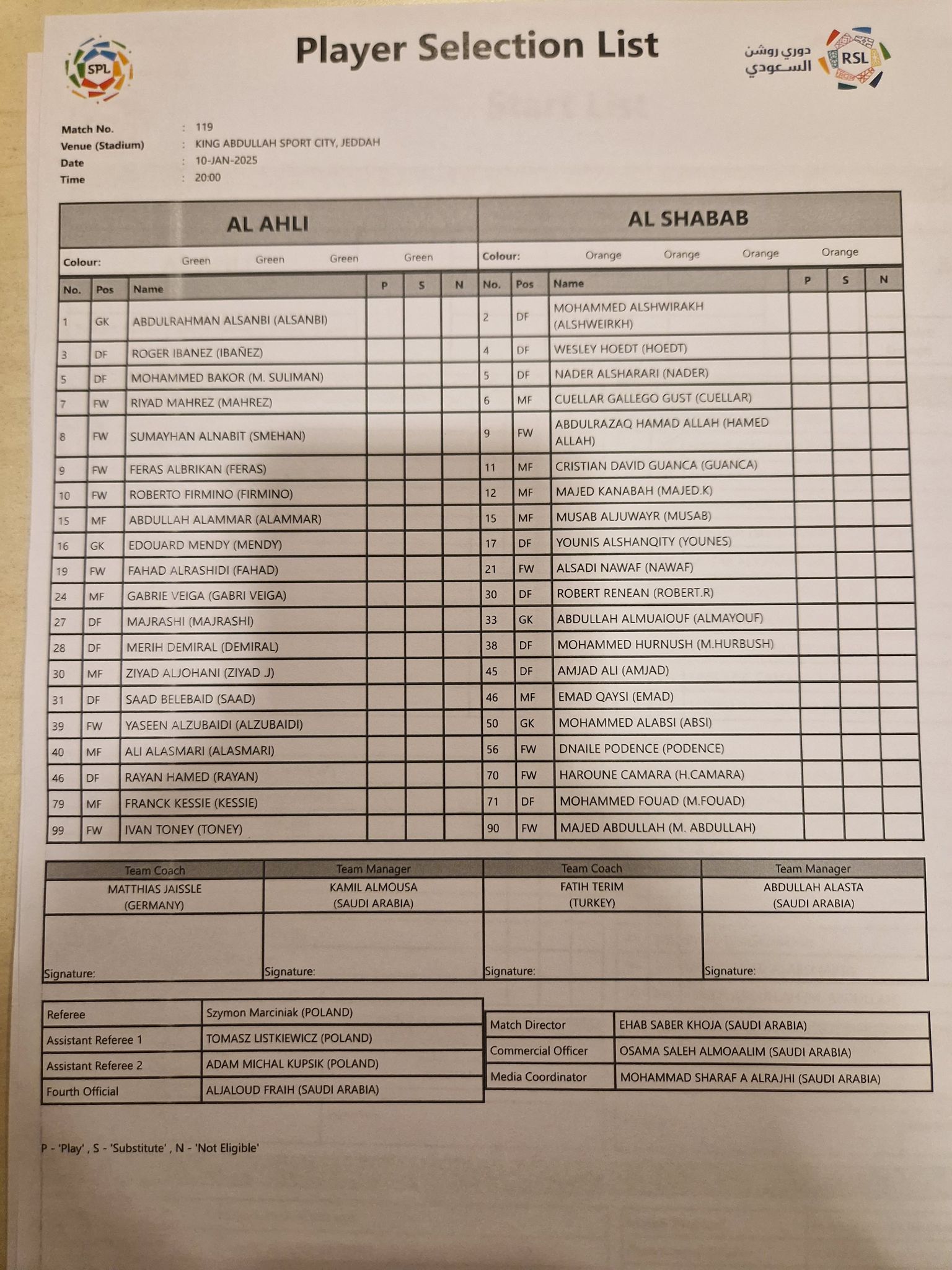 Al Ahli (4-2-3-1): Mendy; Majrashi, Demiral, Ibanez, Yaslam; Al-Juhani, Kessié; Mahrez, Firmino, Veiga; Toney. Allenatore: Matthias Jaissle.