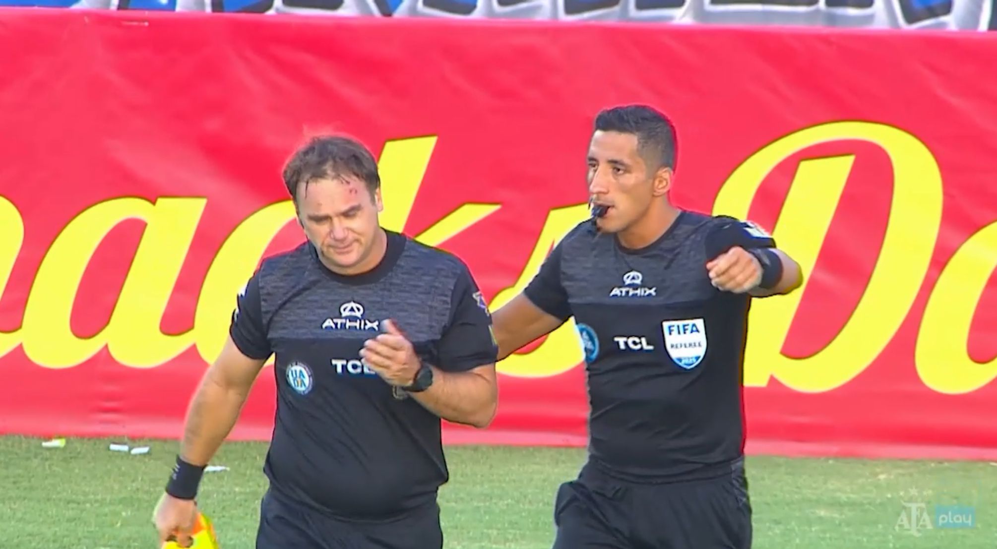 Prima dell’inizio del secondo tempo del match tra Godoy Cruz e Talleres, valido per la terza giornata del girone B del Torneo Apertura 2025, l’assistente Diego Martin è stato colpito da un oggetto contundente che gli ha causato un taglio alla fronte. La partita è stata sospesa dal direttore di gara, Yael Falcon Perez. L’arbitro è stato poi scortato fuori dal campo dalla polizia. Il direttore di gara ha così dichiarato: “Non permetteremo a nessuno di noi di farsi male per un evento sportivo. Siamo nel 2025, questo non può succedere“.
