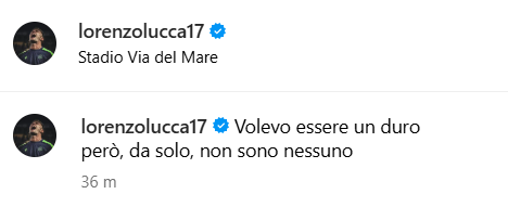 Dopo quanto accaduto ieri al Via del Mare di Lecce in occasione del rigore che è valso i tre punti dell’Udinese, l’attaccante Lorenzo Lucca, pochi istanti fa ha pubblicato un post su Instagram che riprende una parte della canzone di Lucio Corsi, seconda all’ultimo Festival di Sanremo. “Volevo essere un duro. Però, da solo, non sono nessuno”, con la seconda foto in cui si vede tutta la squadra festeggiare sotto il settore ospiti dello stadio salentino.