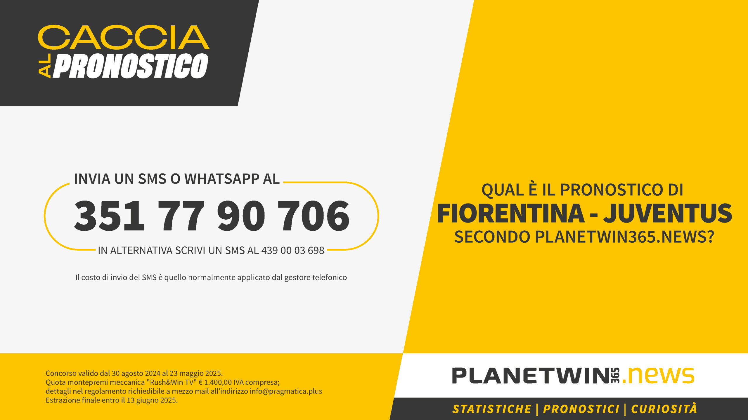 Palladino o Motta? Trova su www.planetwin365.news il pronostico di Fiorentina-Juventus e vinci, invia un sms al numero + 39 439 00 03 698.
