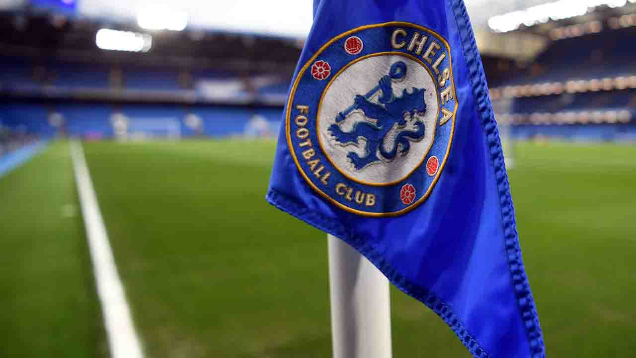 epa09874100 The Chelsea logo on display on a corner flag ahead of the UEFA Champions League quarter final, first leg soccer match between Chelsea FC and Real Madrid at Stamford Bridge in London, Britain, 06 April 2022. EPA/NEIL HALL