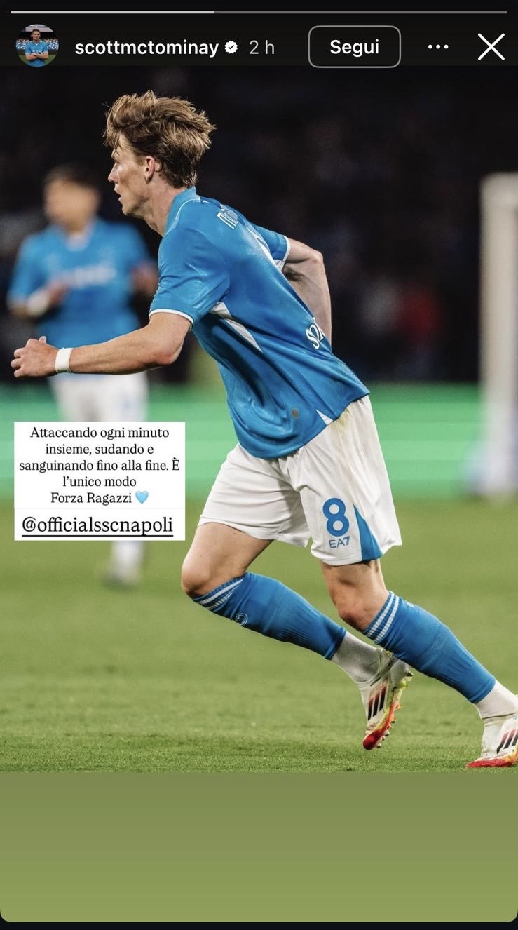 Il Napoli pareggia 2-2 contro il Genoa facendosi riprendere dal Grifone e permettendo all’Inter di tornare a -1. Scott McTominay, autore di entrambi gli assist si affida a Instagram per suonare la carica.