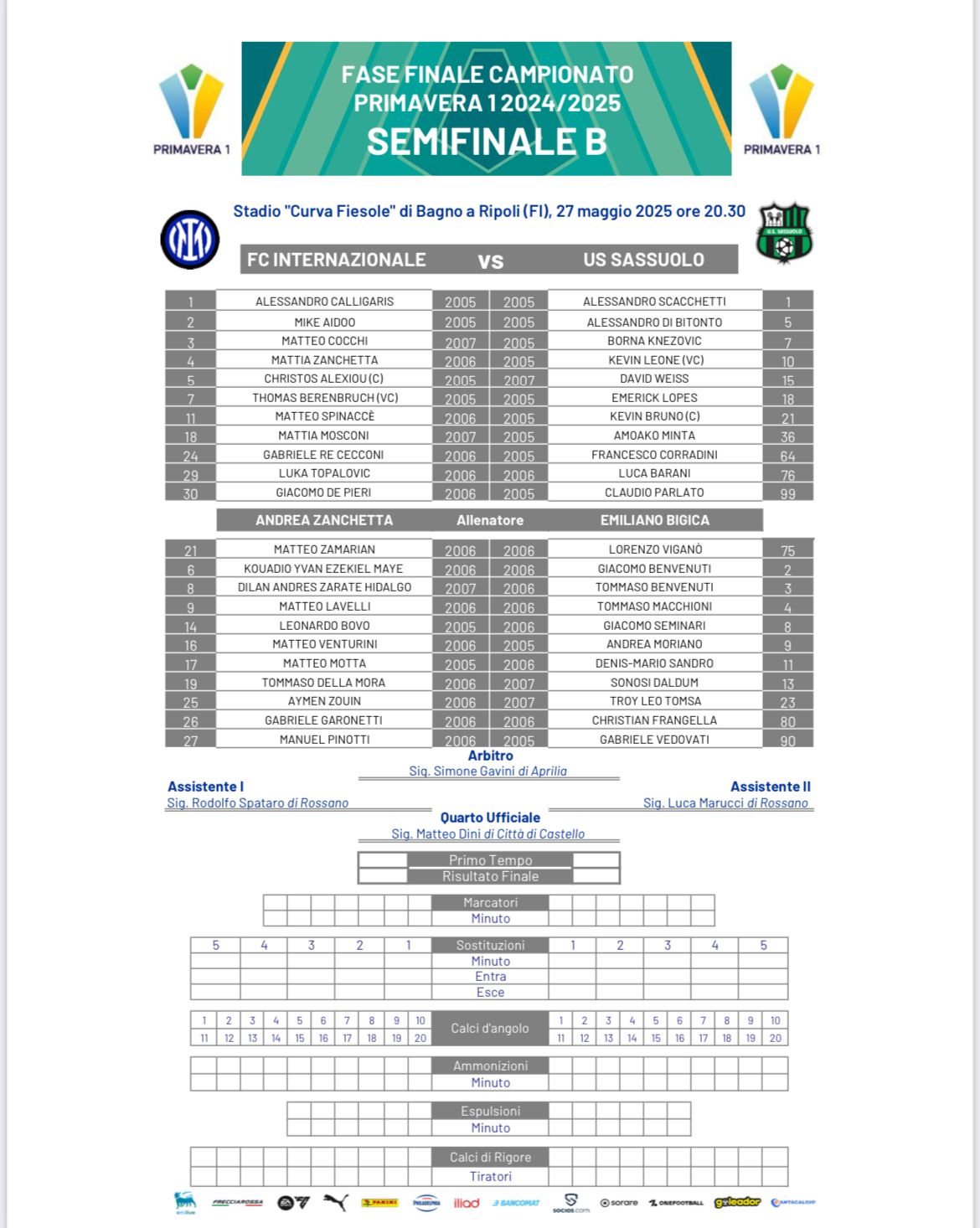 Alle 20.30 in diretta su Sportitalia, Inter e Sassuolo si affronteranno nella seconda semifinale di Primavera 1, la vincente affronterà venerdì in finale sempre alle 20.30 al Viola Park la Fiorentina che ieri ha eliminato la Roma. Segui il match sul canale 60 DTT, qui sul nostro sito e sulla nostra app.