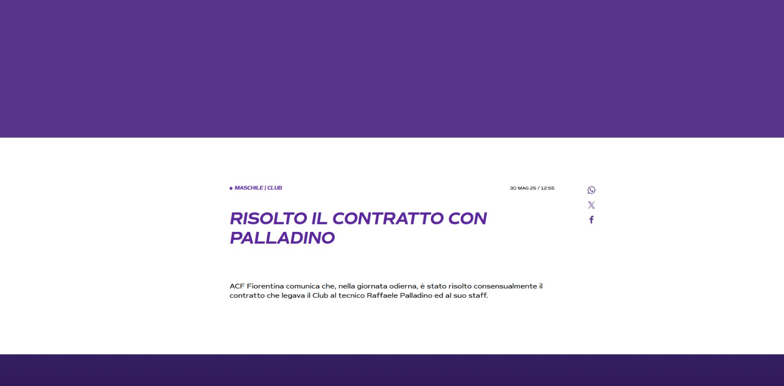 Ore di ufficialità in casa Fiorentina, i gigliati infatti hanno annunciato con uno scarno e freddo comunicato la risoluzione consensuale del contratto con Raffaele Palladino che diventa così ora anche ufficialmente l’ex tecnico della viola. Un rapporto che si chiude nel modo peggiore possibile con Palladino e il suo staff che non hanno neanche ricevuto i classici ringraziamenti di rito.