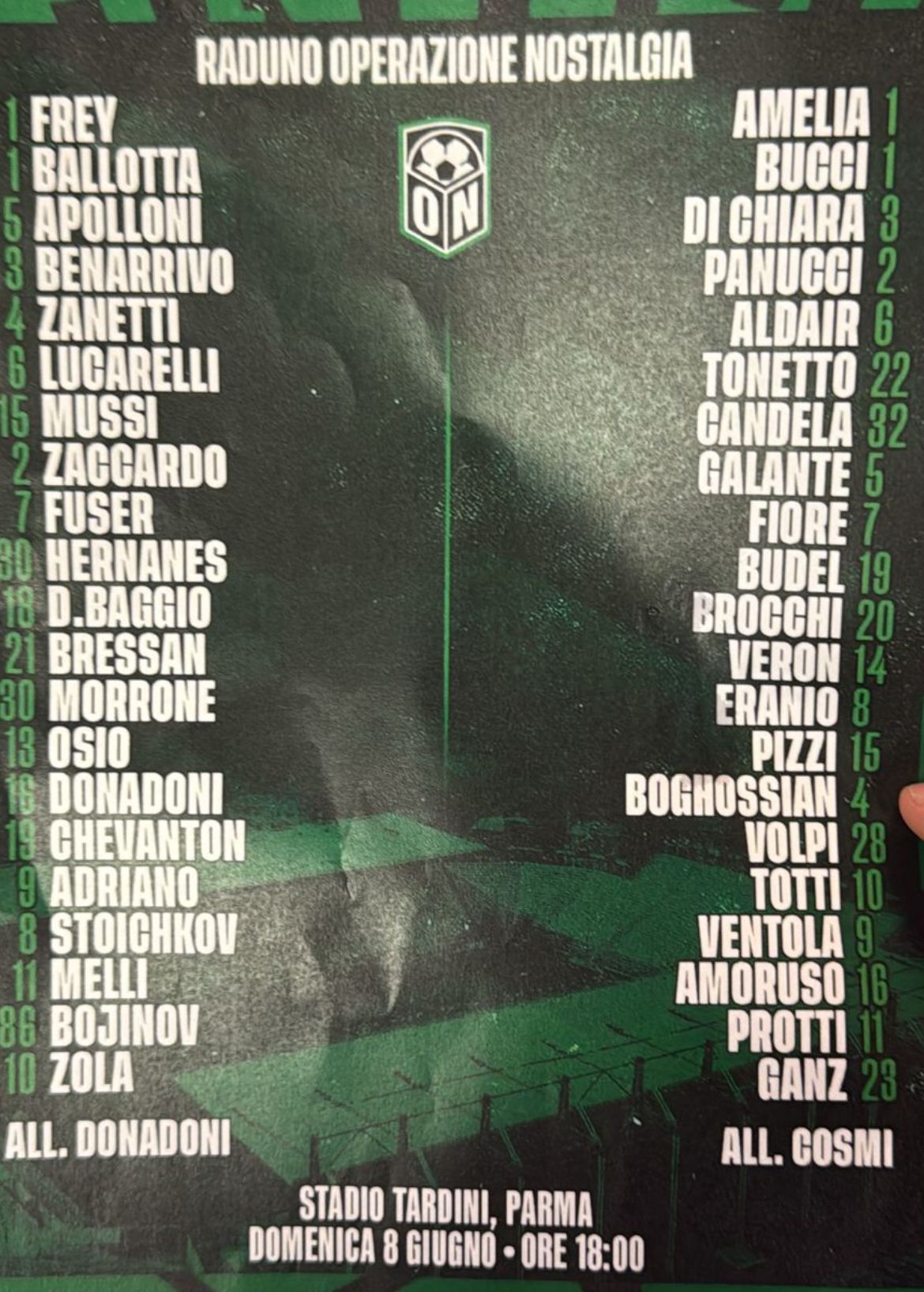 Terminata la partita di Operazione Nostalgia, la sfida è stata trasmessa sul canale 60 dtt. Il match è terminato 7-7. Queste le due rose: