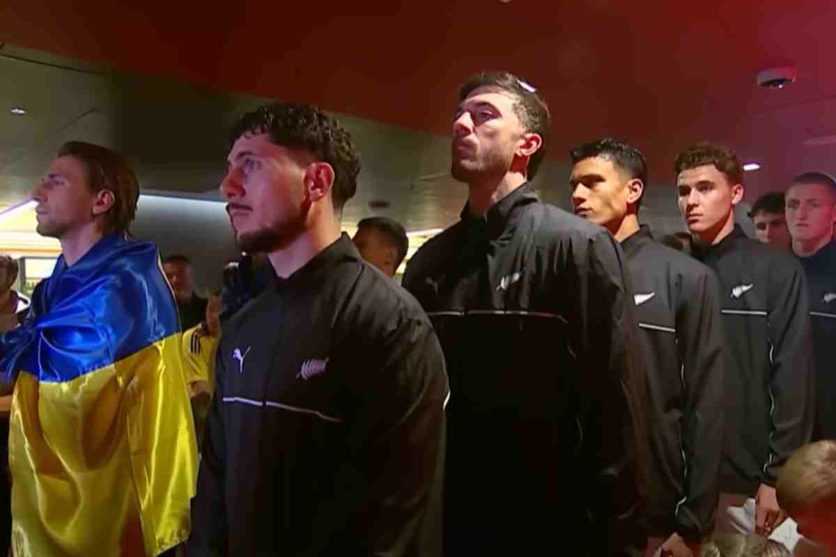 A Toronto, poco prima dell’amichevole vinta 2-1 contro la Nuova Zelanda di due giorni fa, l’Ucraina è scesa in campo con una doppia bandiera: quella del Paese con i classici colori giallo e blu, e non solo, con l’obiettivo di voler ricordare che ogni giorno le città ucraine soffrono l’orrore della guerra.