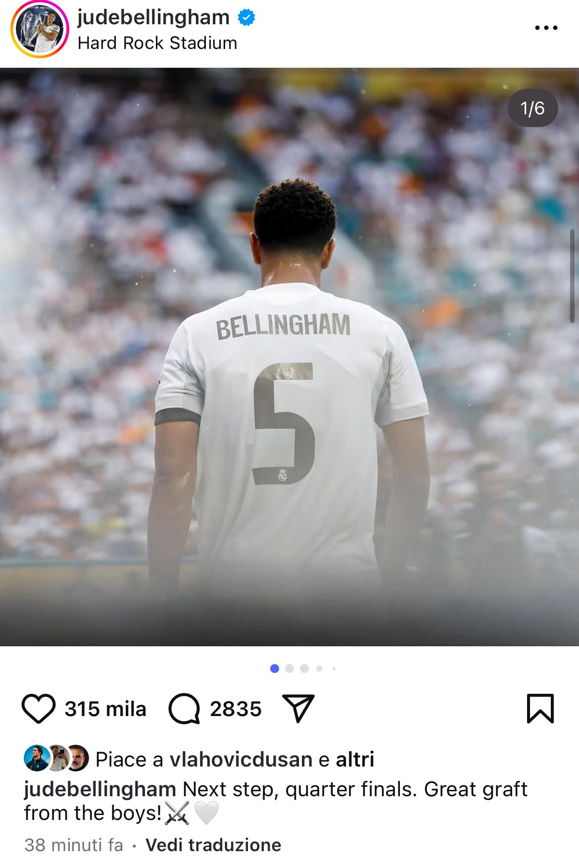 Ecco il post di Bellingham e il like galeotto di Vlahovic.