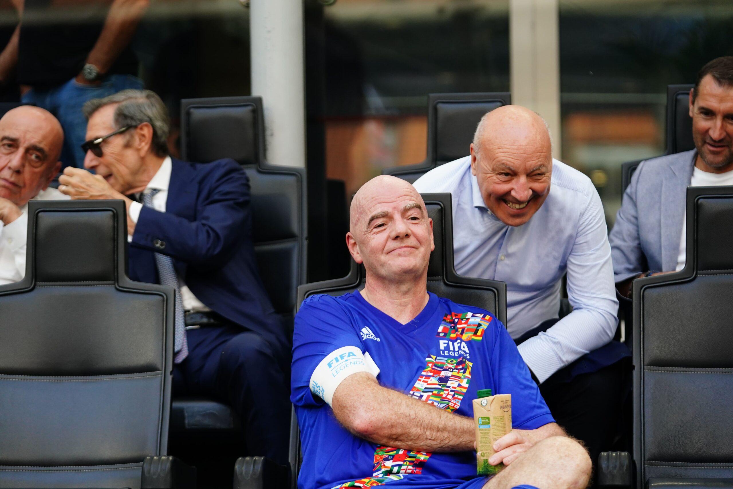 Si è giocato oggi a San Siro il Legends Match della FIFA. L’incontro si è svolto in un San Siro riempito solo nei posti VIP e in campo ha visto protagonisti tanti ex calciatori soprattutto di Serie A e alcuni importanti personaggi del mondo del calcio. La sfida ha visto il match tra due squadre denominate come “Fifa Legends” e “Uefa Legends”. Tra i presenti in campo il presidente della Fifa Gianni Infantino, il vice presidente dell’Inter Javier Zanetti, il connazionale Pastore, ma anche Fabio Capello in panchina, Vincenzo Iaquinta, Houssine Kharja e tanti altri. In panchina presente anche Fabio Capello. Mentre a guardare la gare, c’era che Beppe Marotta, Paolo Maldini, Adriano Galliani e tanti altri.