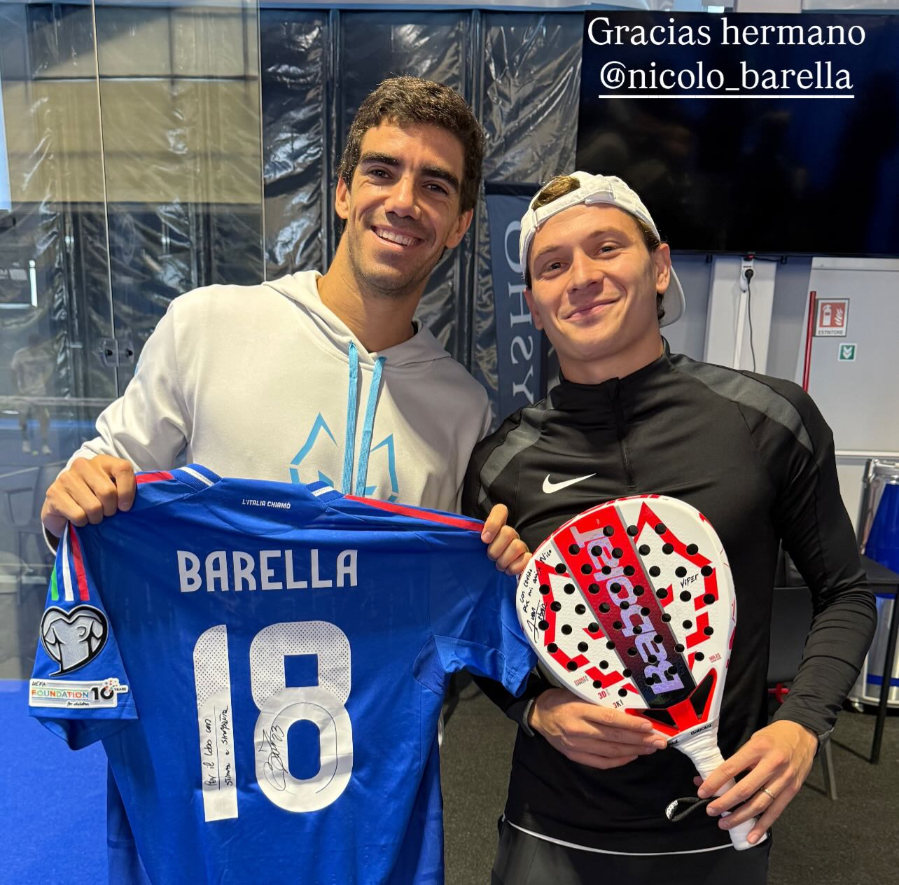 Metti un pomeriggio a Milano, in attesa di prendere il treno in direzione Coverciano. Nicolò Barella con la pala in mano, Juan Lebron con la maglia della Nazionale. Lo scorso anno, il centrocampista dell’Inter fu uno dei tanti calciatori che si presentarono all’Allianz Cloud per vedere da vicino i big del padel: ieri Barella ha incontrato di nuovo ‘el Lobo’, tra i protagonisti più attesi dell’Oysho Milano Premier Padel P1, iniziato ieri con le finali in programma domenica 12.