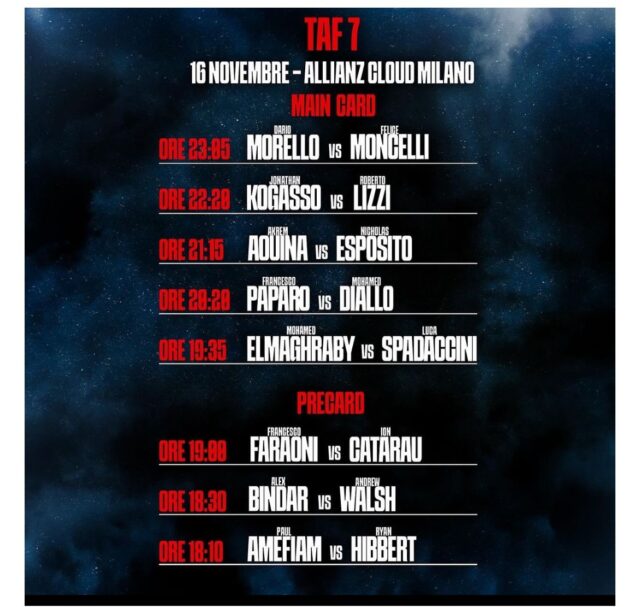 TAF 7 – Kogasso batte Lizzi, è Campione d’Italia per i pesi massimi leggeri! Segui la grande box in diretta su Sportitalia 16 Novembre 2024 di Daniele Najjar